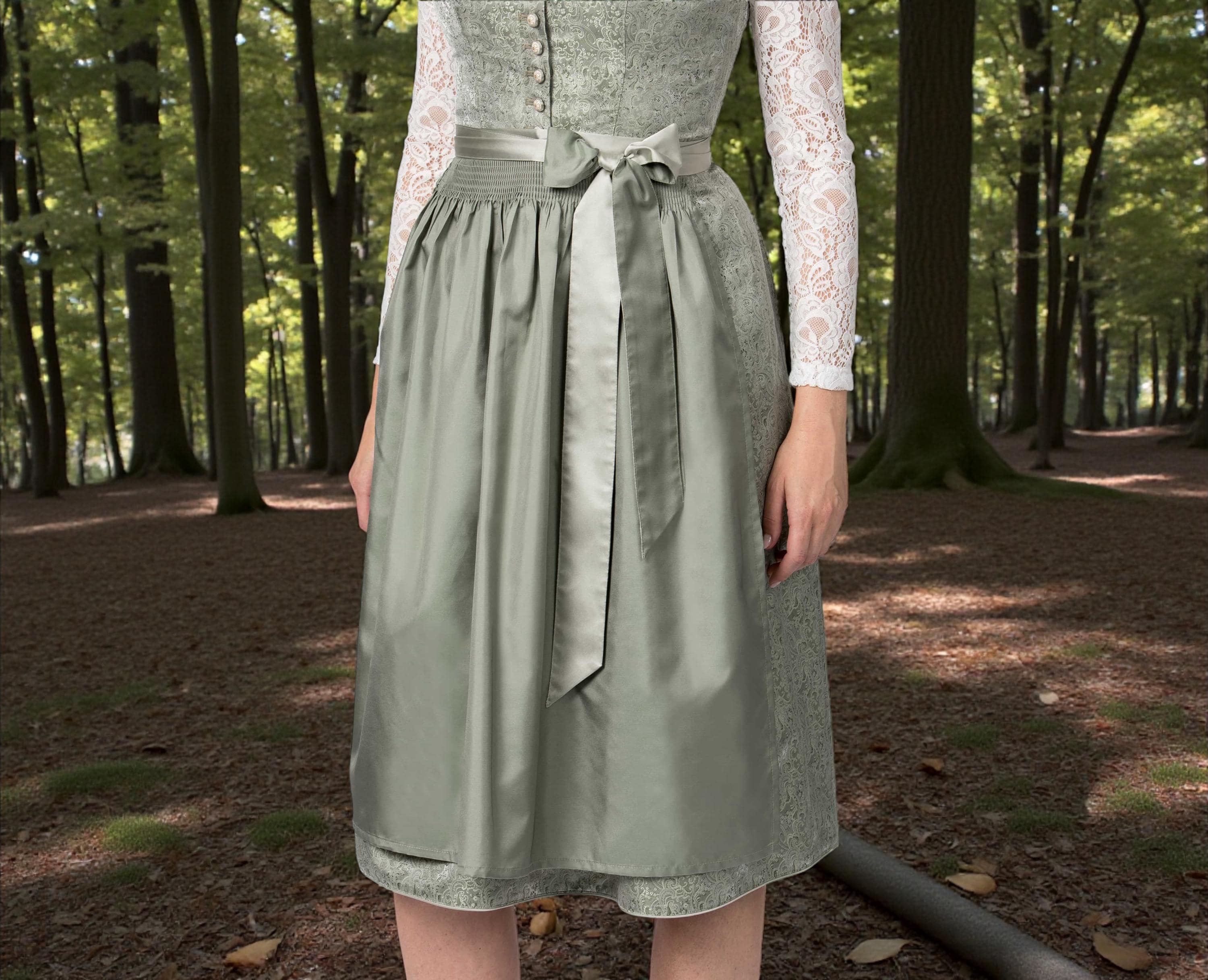 The bodices of the dirndls are sometimes intricately embroidered with motifs from nature: flowers, birds, and mountain peaks. The skirt falls in soft folds and is sometimes decorated with trim reminiscent of mountain streams. Each dirndl tells a story of the beauty and strength of the mountains.