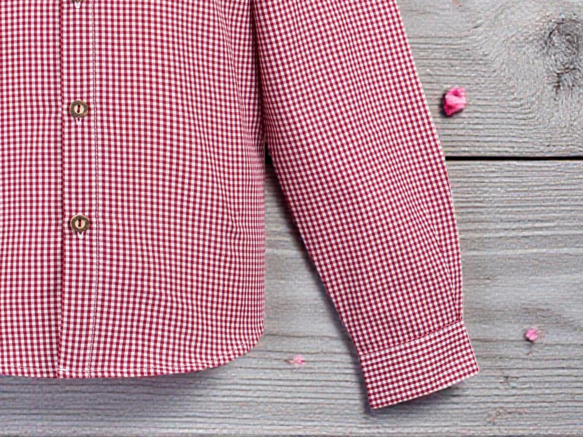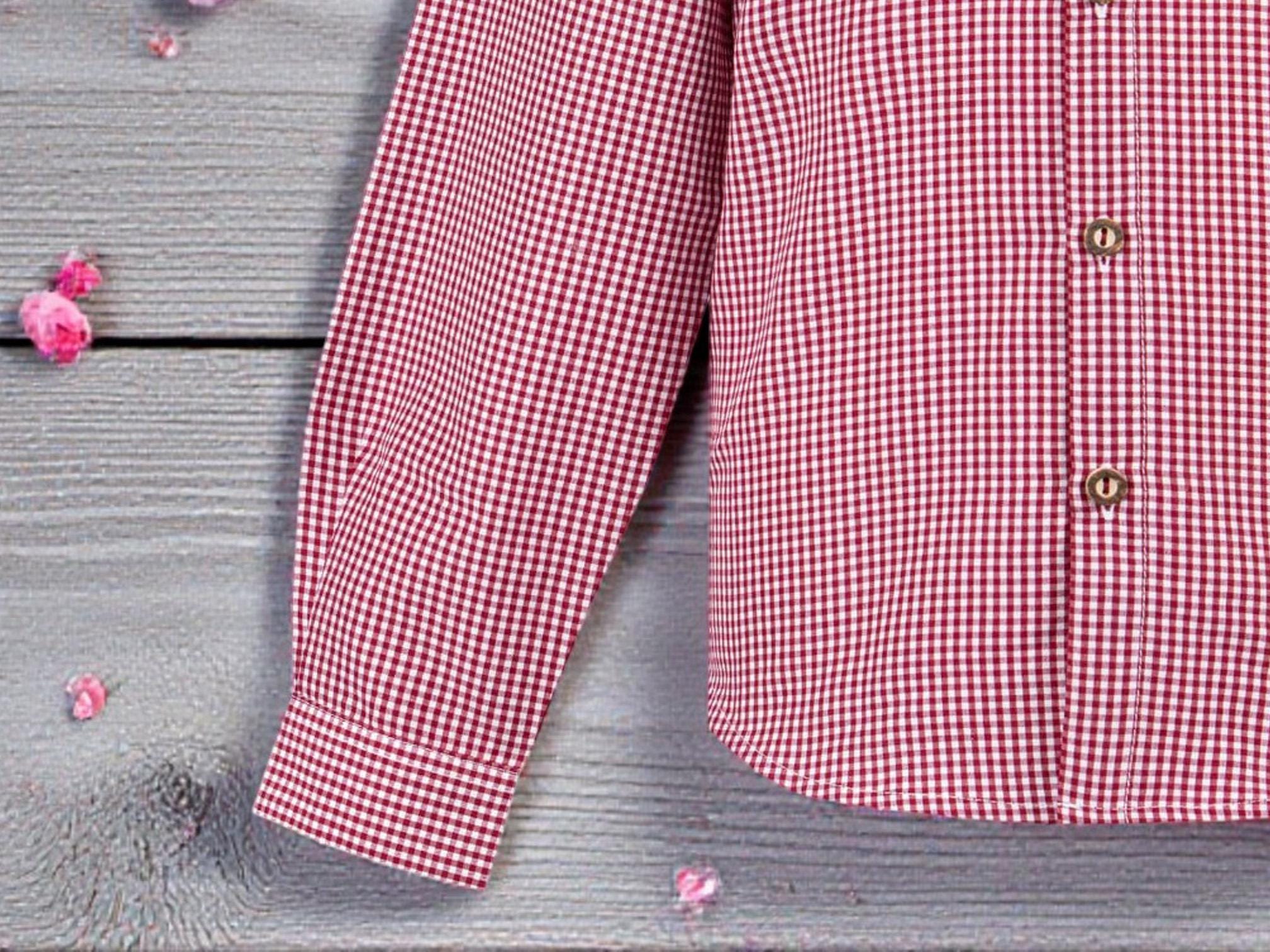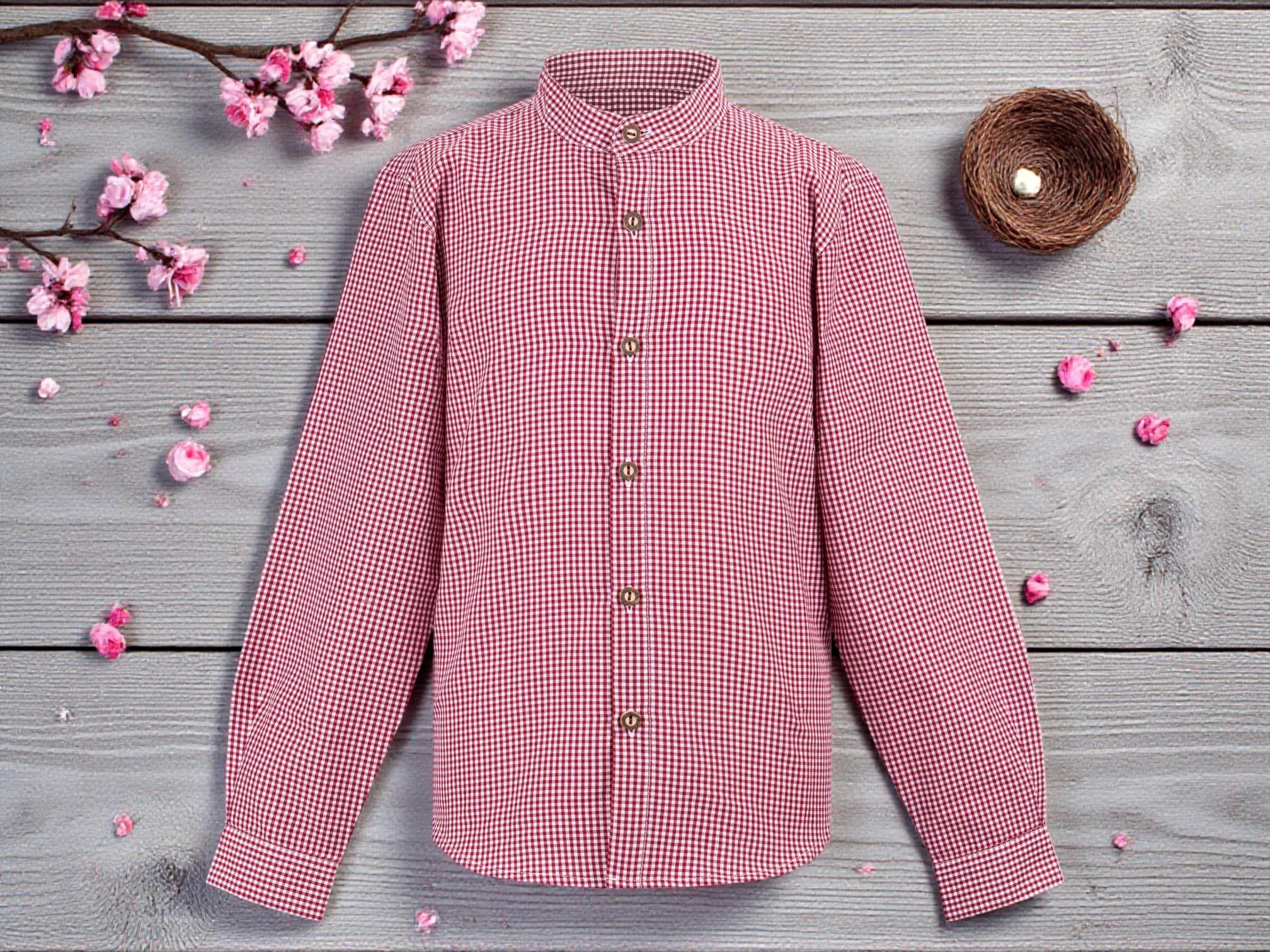 Children's traditional red shirt – classic checked shirt with stand-up collar and traditional buttons | Traditional clothing for boys & girls