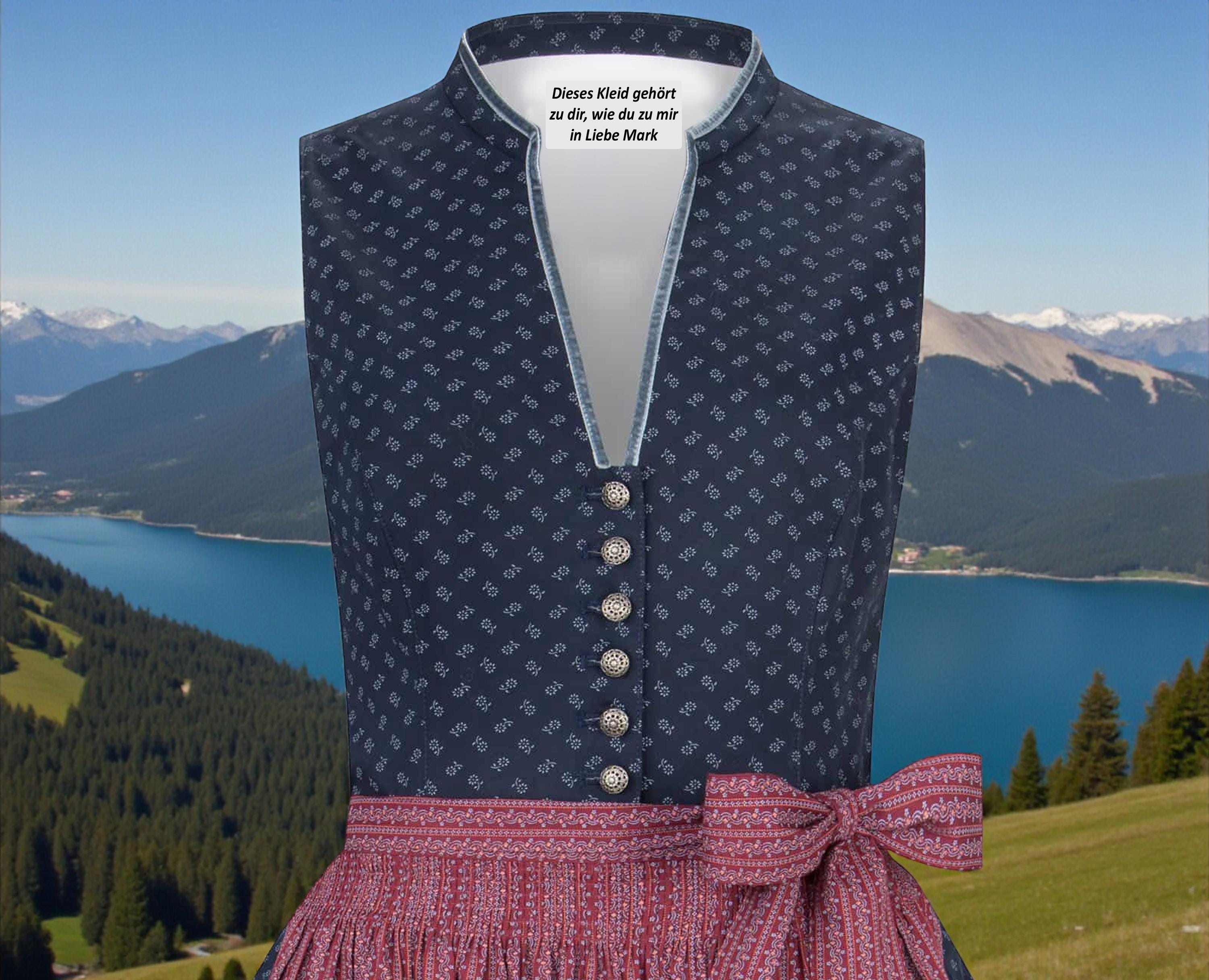 Das Dirndl Ashley von Trachtenhans in edlem Dunkelblau besticht durch seine elegante Schnittführung und liebevoll gestaltete Details. Hergestellt aus 100 % pflegeleichter Baumwolle, verleiht das charmante Blumenmuster dem Dirndl eine frische und feminine Note.
