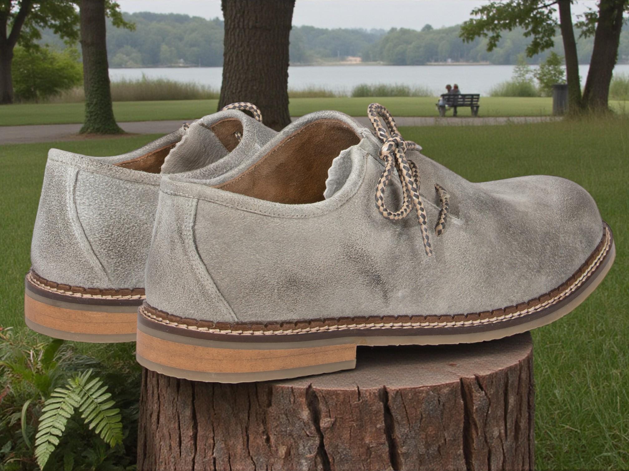 Grey leather Haferl shoes – traditional shoes with chamois-tanned deerskin insole, Oktoberfest shoes, Austrian & Bavarian traditional dress