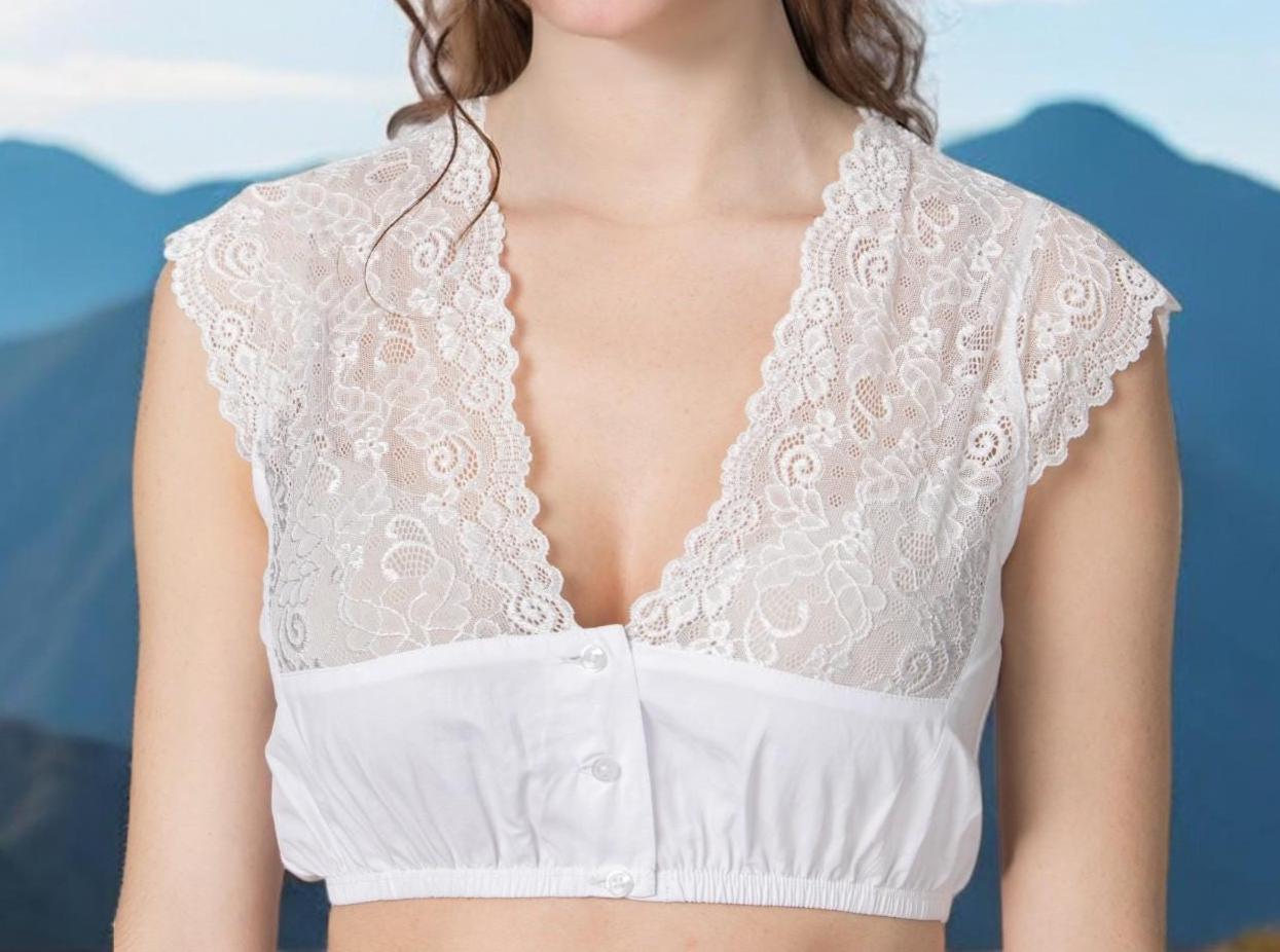 The Ceren dirndl blouse from Trachtenhans combines feminine elegance with traditional charm. Crafted from high-quality lace with a floral pattern, this blouse adds a sophisticated touch to any traditional outfit.