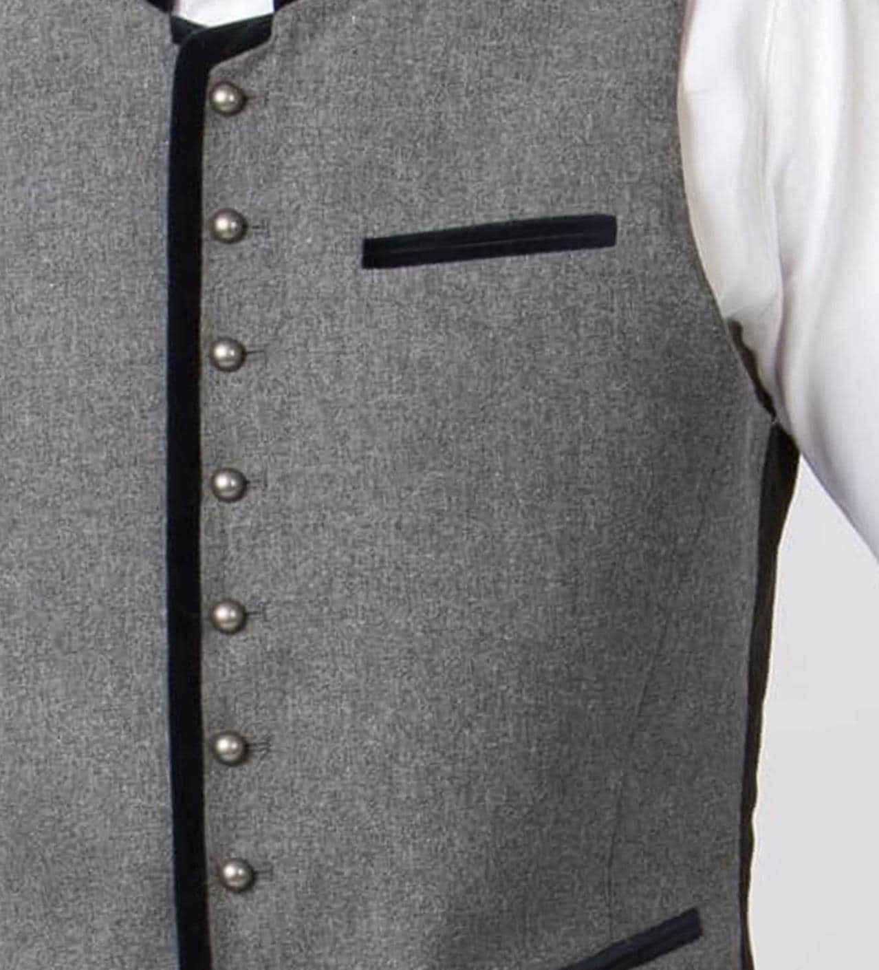 Traditionally, men's vests are made from high-quality materials such as velvet and wool. These materials not only give the vests a robust and durable quality, but also an authentic, rustic aesthetic that perfectly complements alpine folk fashion. The workmanship is often of the highest quality, with carefully sewn seams and loving details that reflect the tailors' craftsmanship and attention to detail.