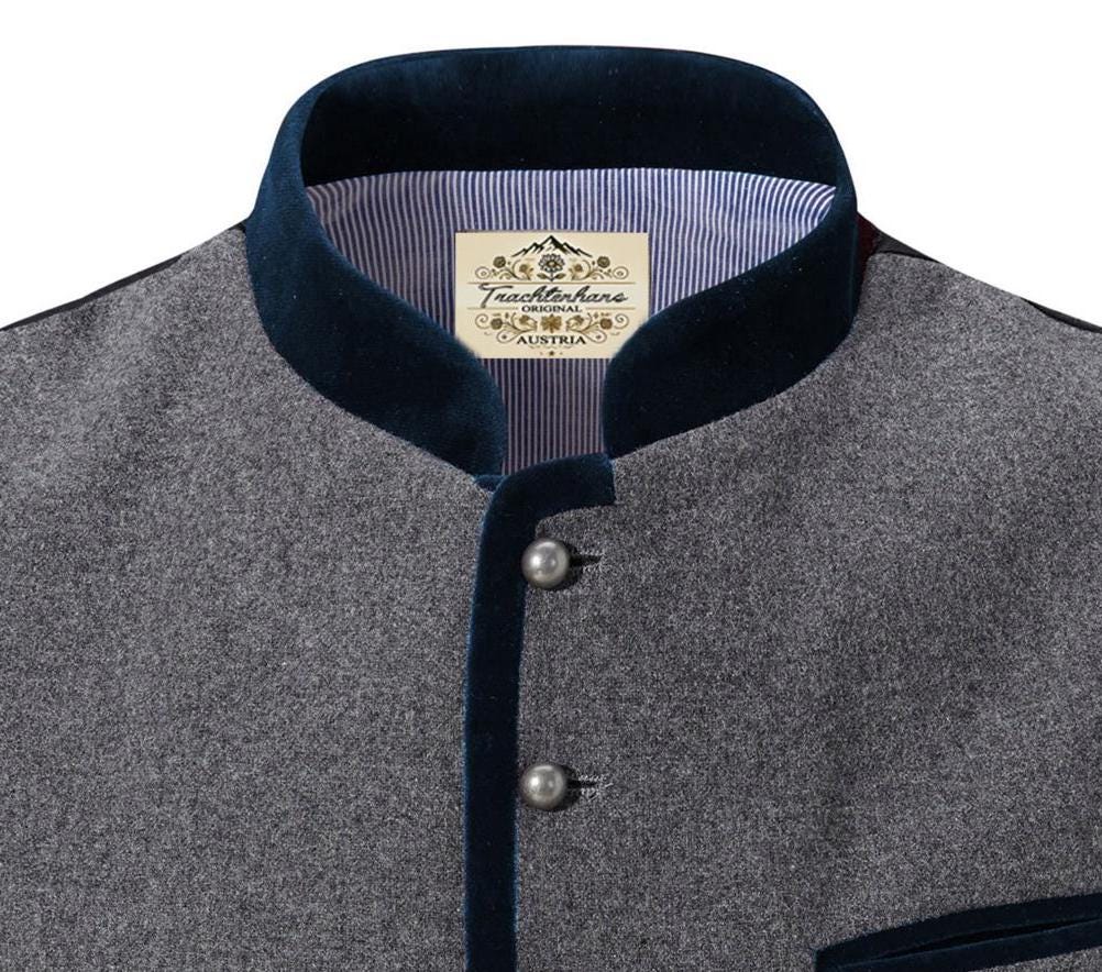 Traditional vest in grey with dark blue trim, wool / black back / cultural clothing / Austria / Bavaria / Oktoberfest
