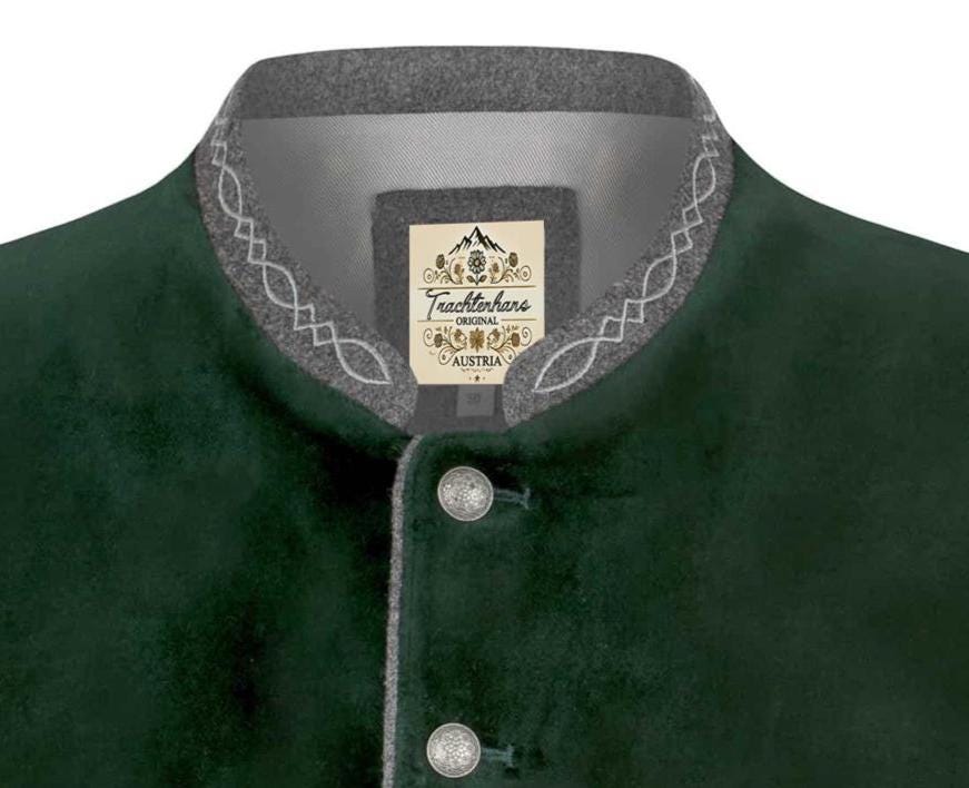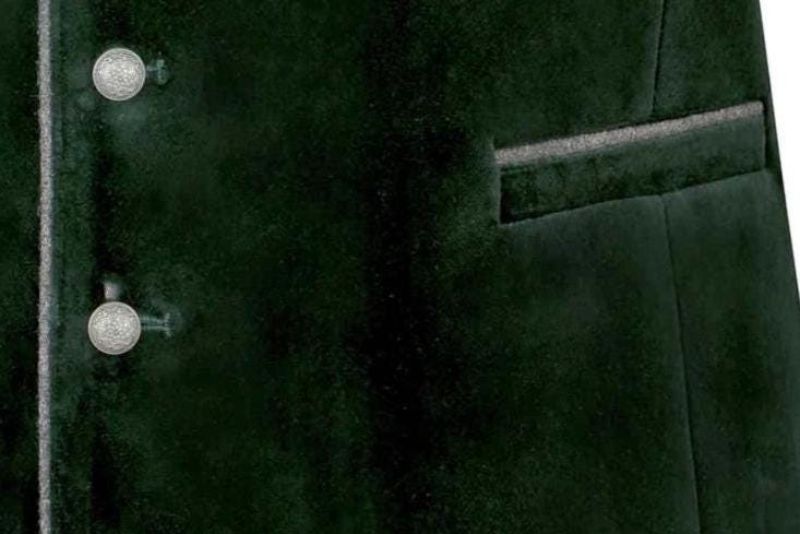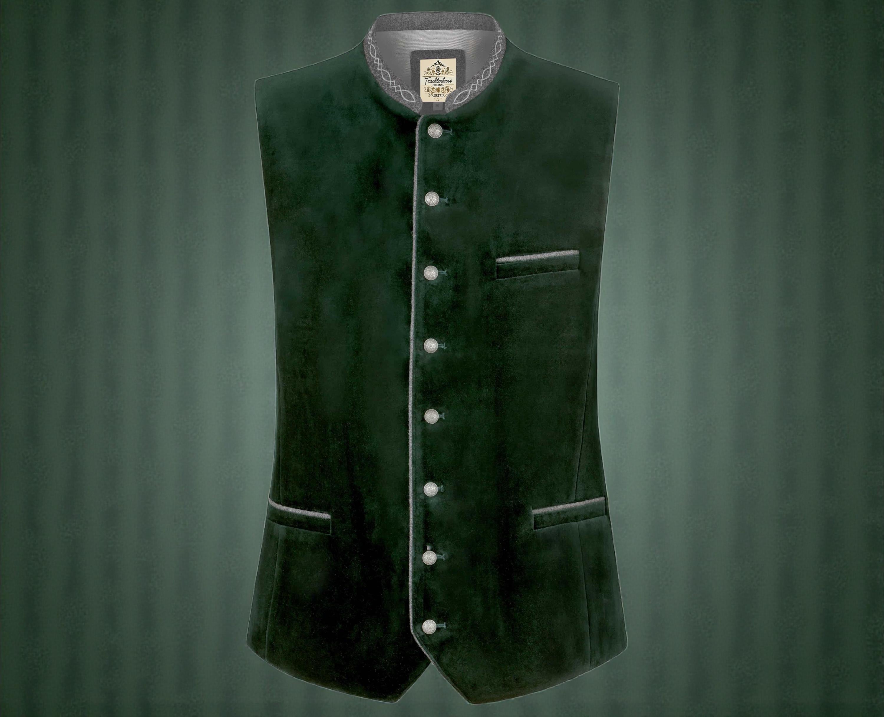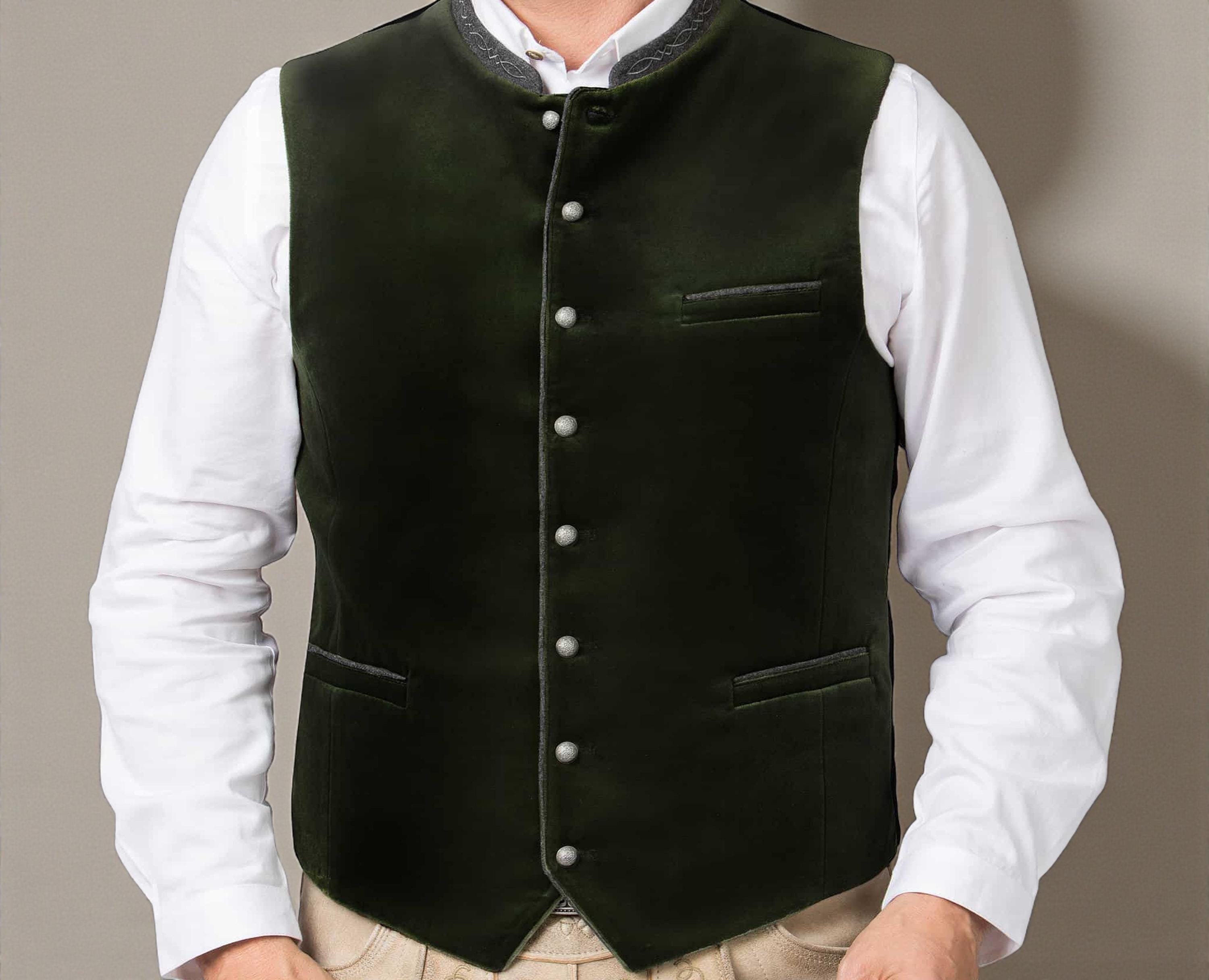 Classic men's fir green traditional vest made of cotton velvet – traditional vest with stand-up collar, Oktoberfest vest, Bavarian Austrian folk wear