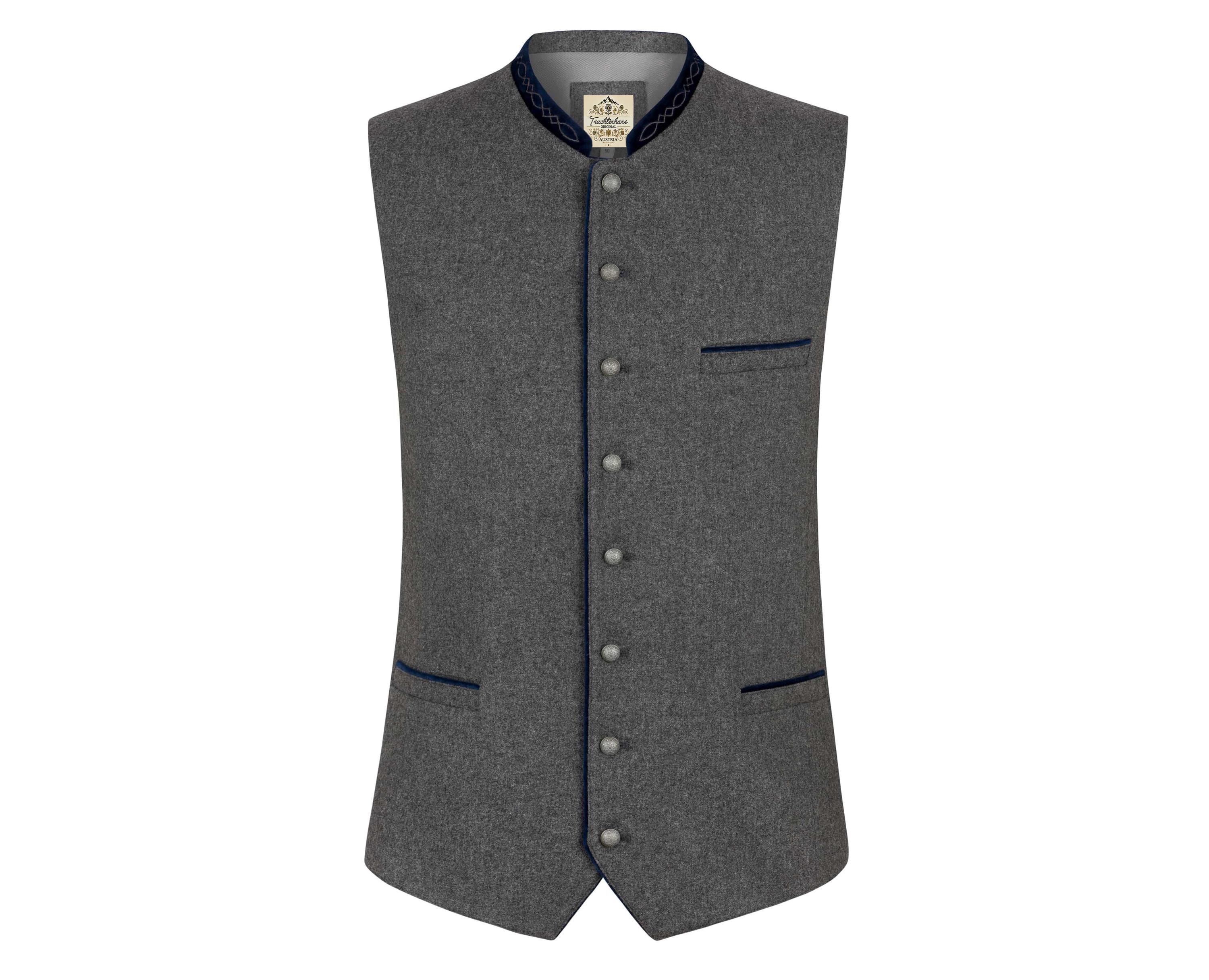 This classic men's traditional vest, made from high-quality, melange loden fabric, is a timeless classic of alpine folk fashion. It combines traditional craftsmanship with elegant design and impresses with its durable quality and exceptional comfort.