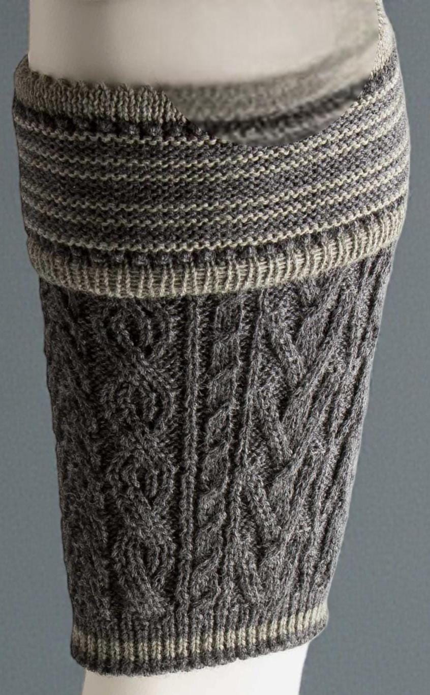 Men's traditional Loferl socks with cable knit pattern, anthracite-olive – calf warmers with sock section, Oktoberfest traditional socks, Bavarian Austrian folk wear
