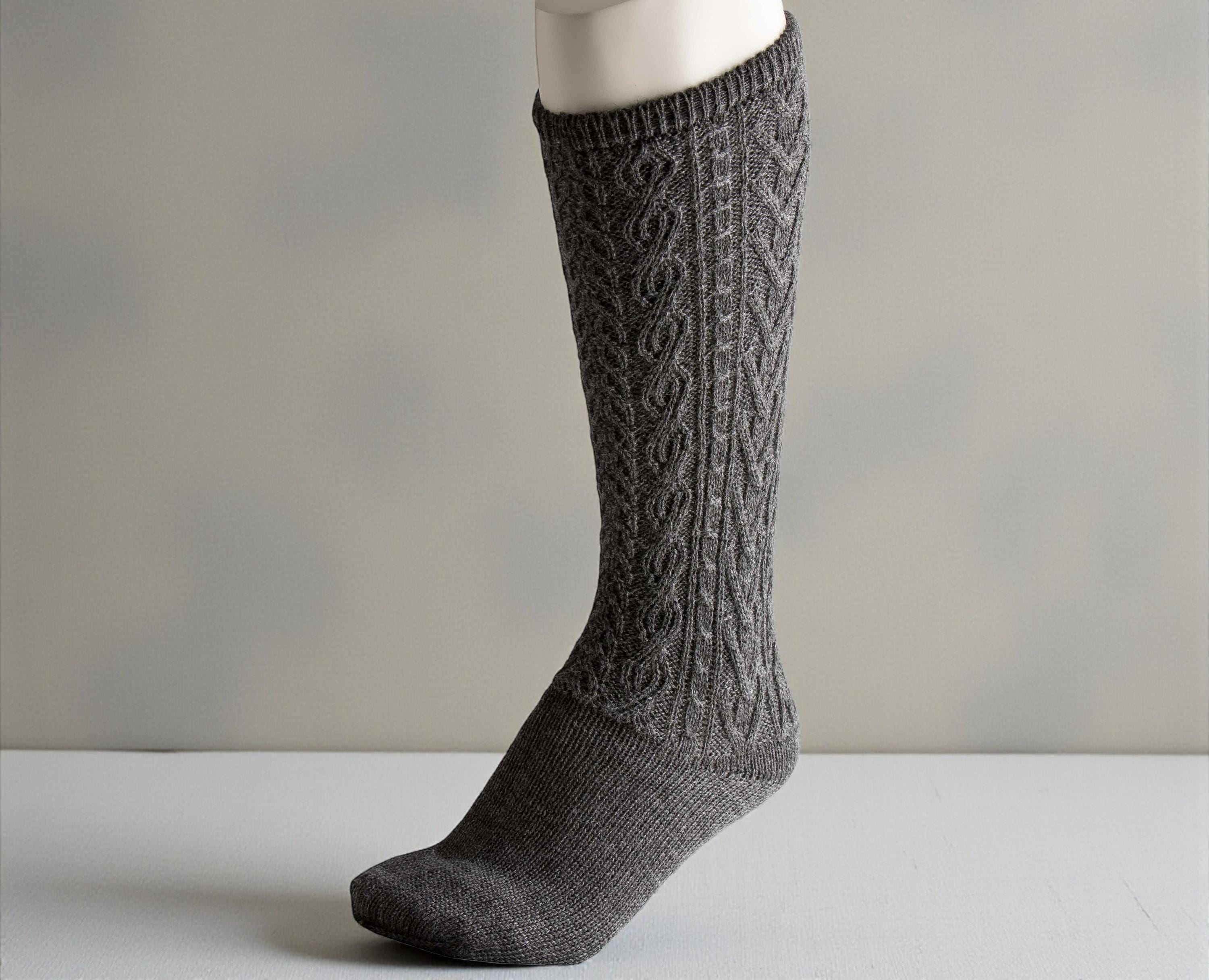 Traditional knee-high socks in anthracite with a cable knit pattern – wool socks for lederhosen, Oktoberfest traditional socks, Bavarian Austrian folk wear for men