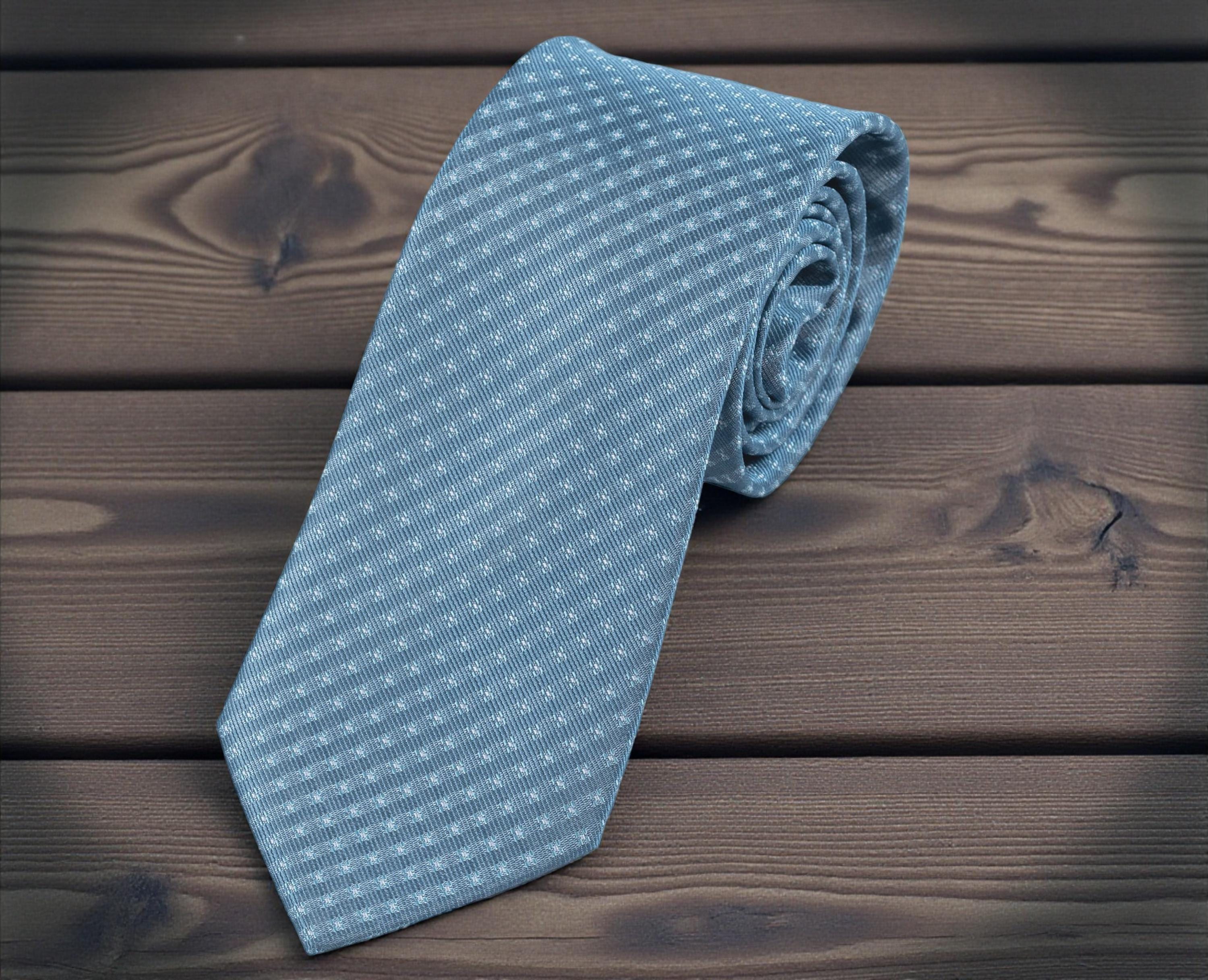 This classic traditional tie in smoky blue is the perfect complement to a stylish traditional outfit. It is traditionally worn under a vest or waistcoat and lends the look an elegant, polished touch.