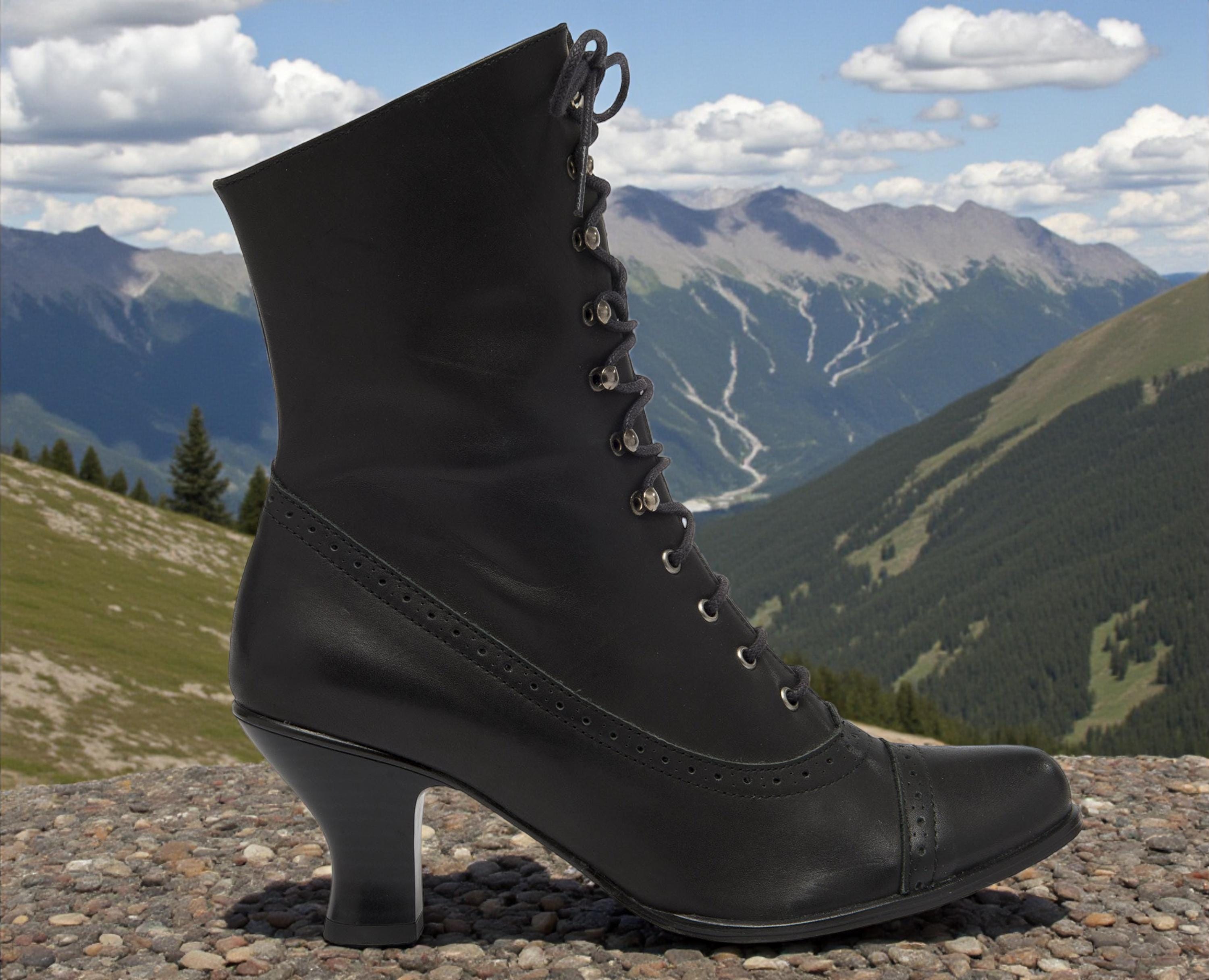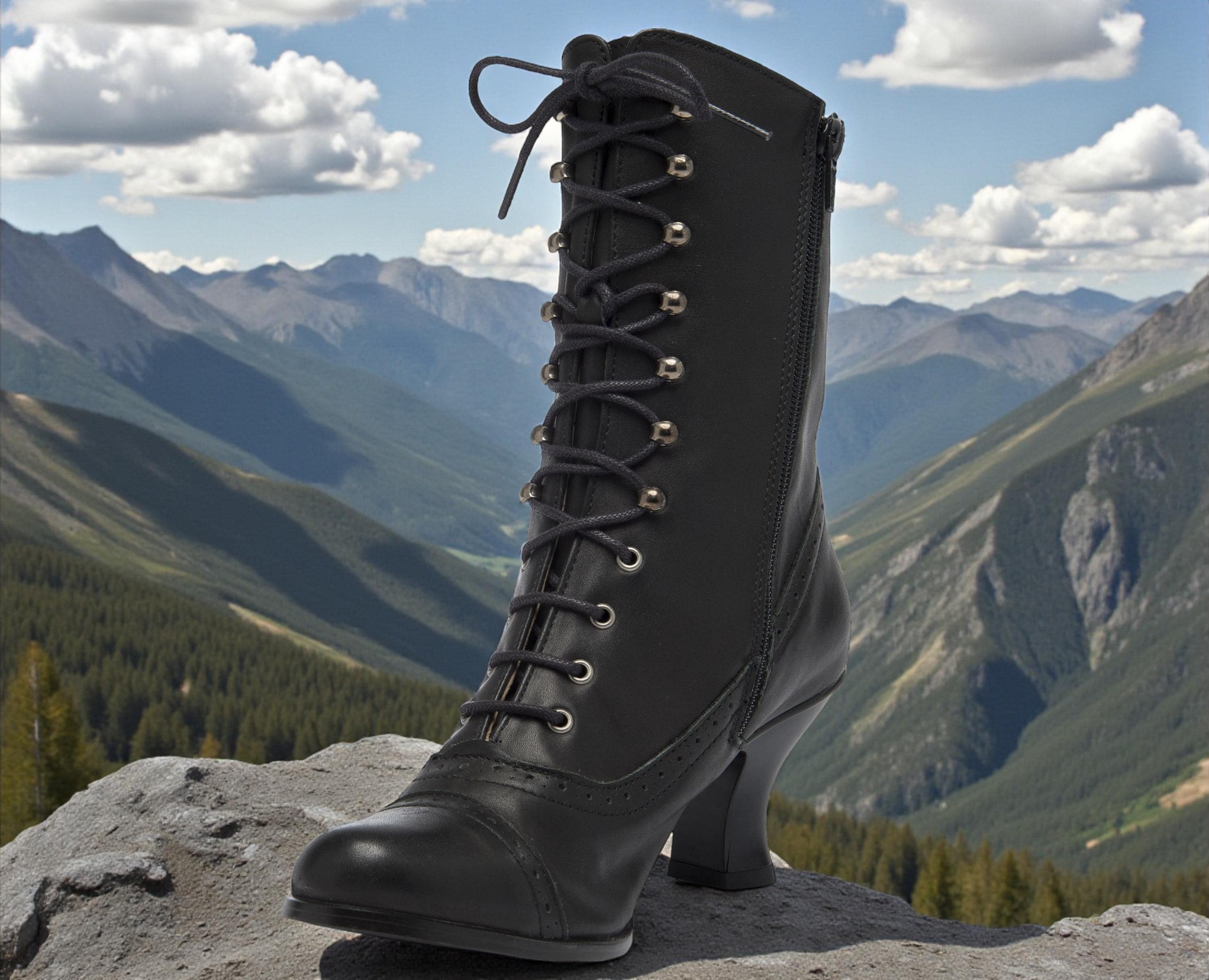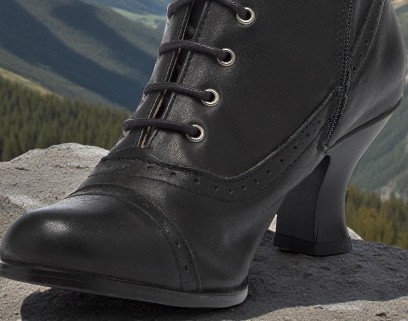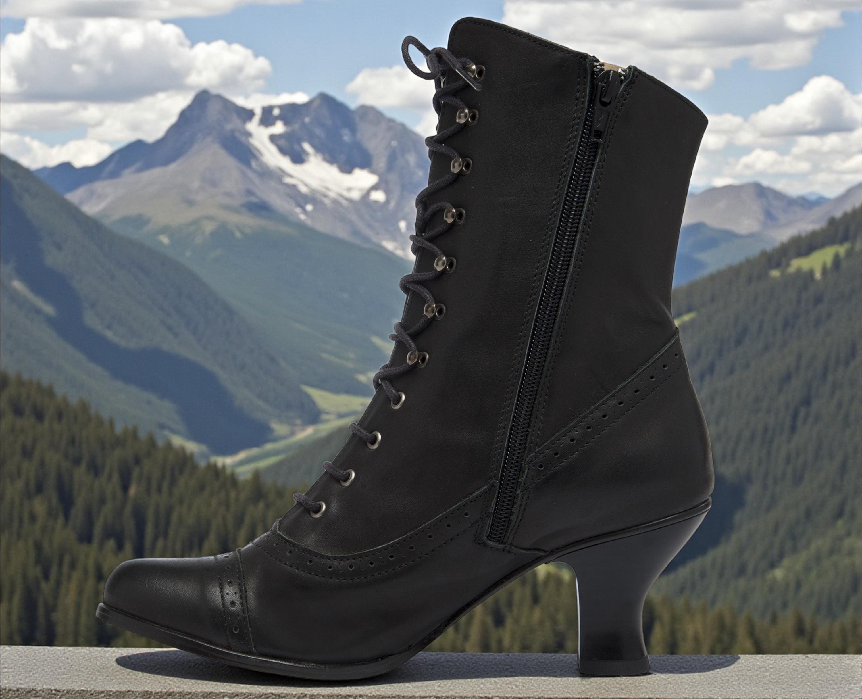 Black leather traditional boots for women – Dirndl boots with deerskin insole, Oktoberfest shoes, Bavarian Austrian traditional dress, elegant