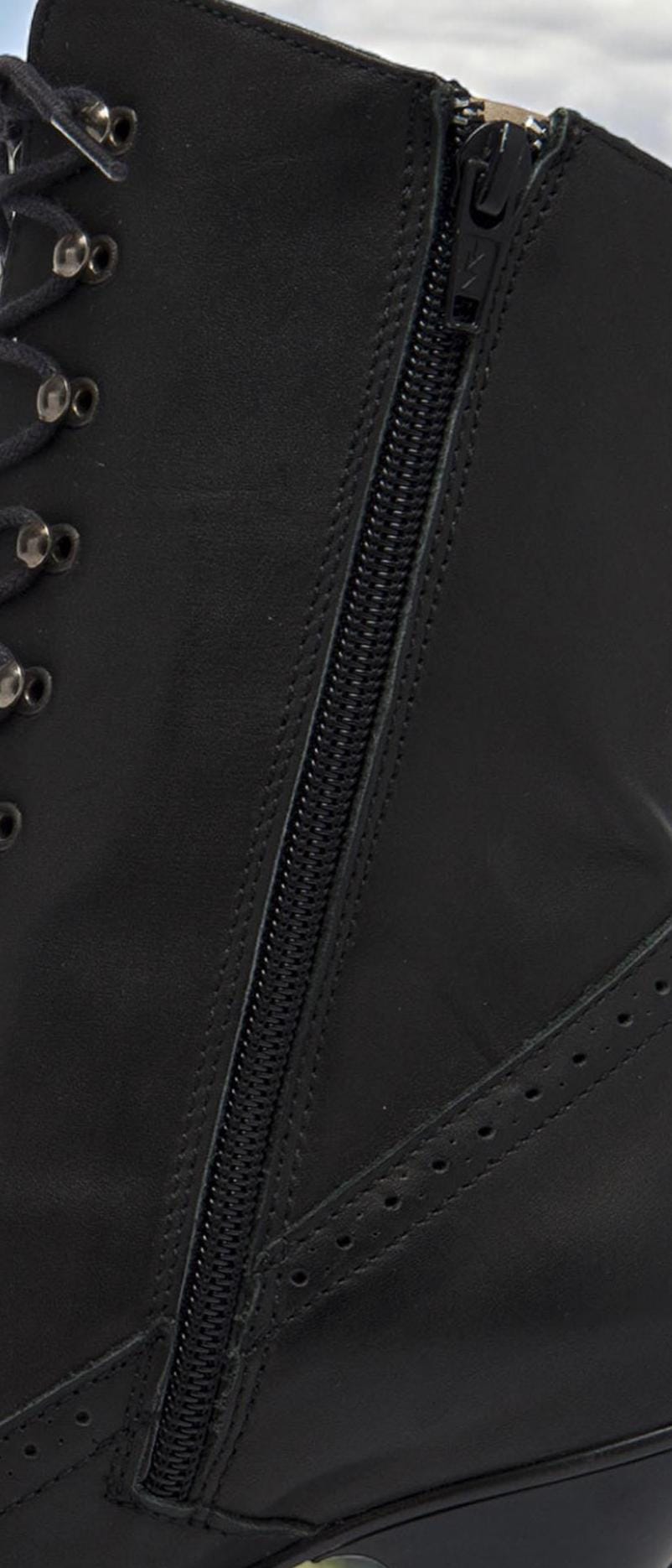 The curved heel gives the boot an elegant silhouette, while the inner zipper allows for easy on and off. The lacing features an exclusive, color-coordinated design.