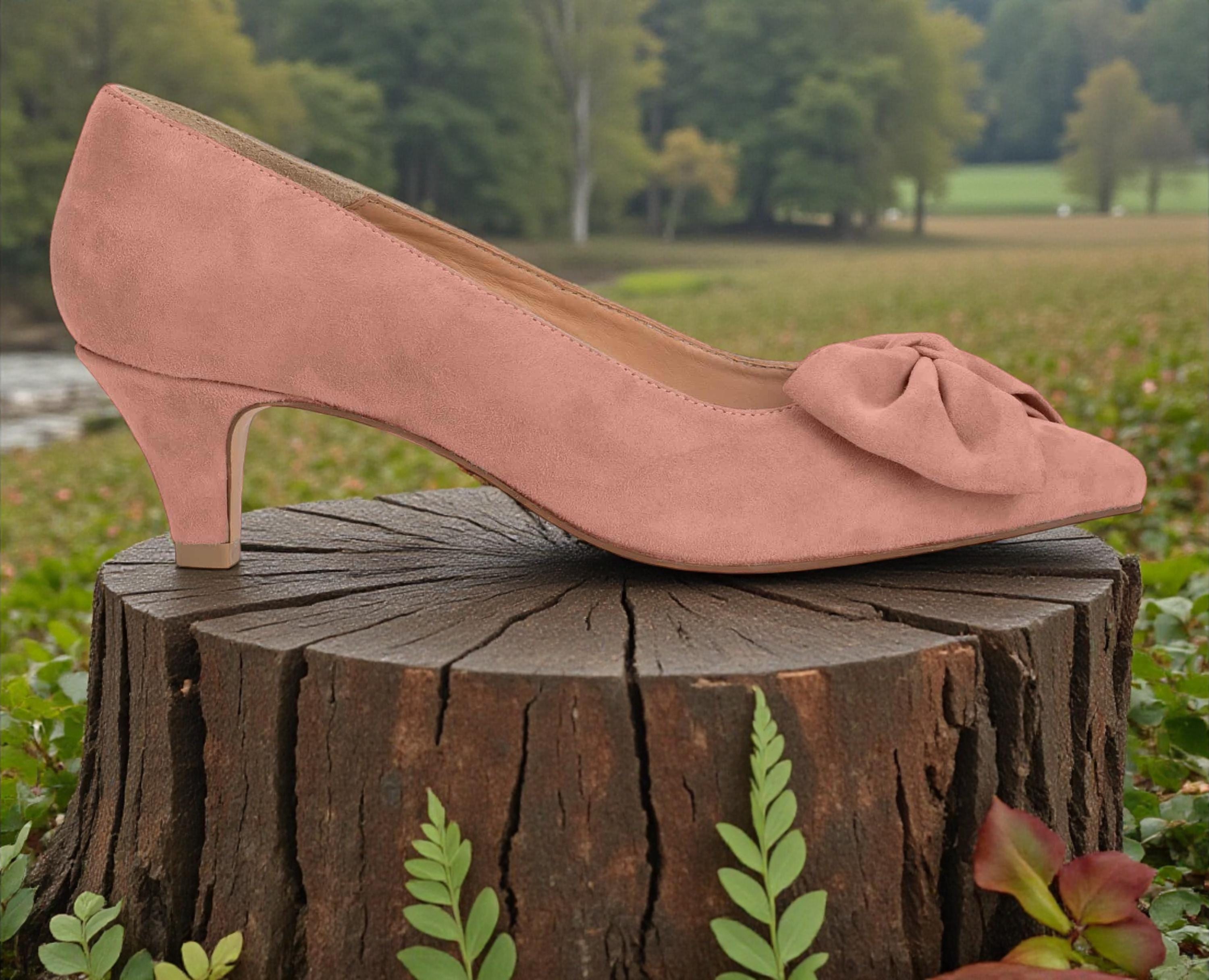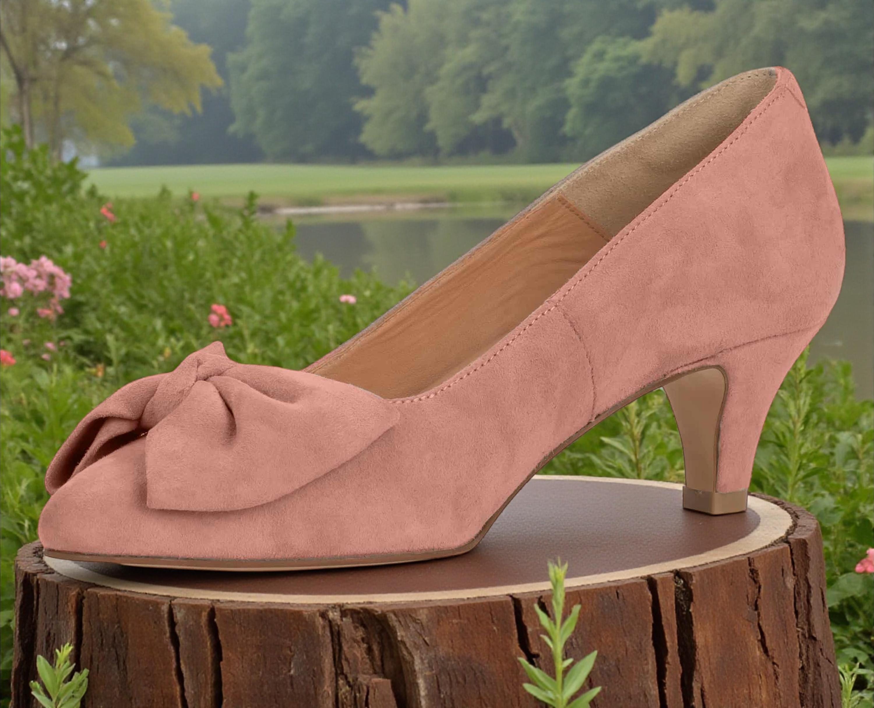 Women's antique rose-colored goatskin leather traditional pumps – elegant dirndl pumps with deerskin insole, Oktoberfest shoes, Bavarian Austrian traditional dress