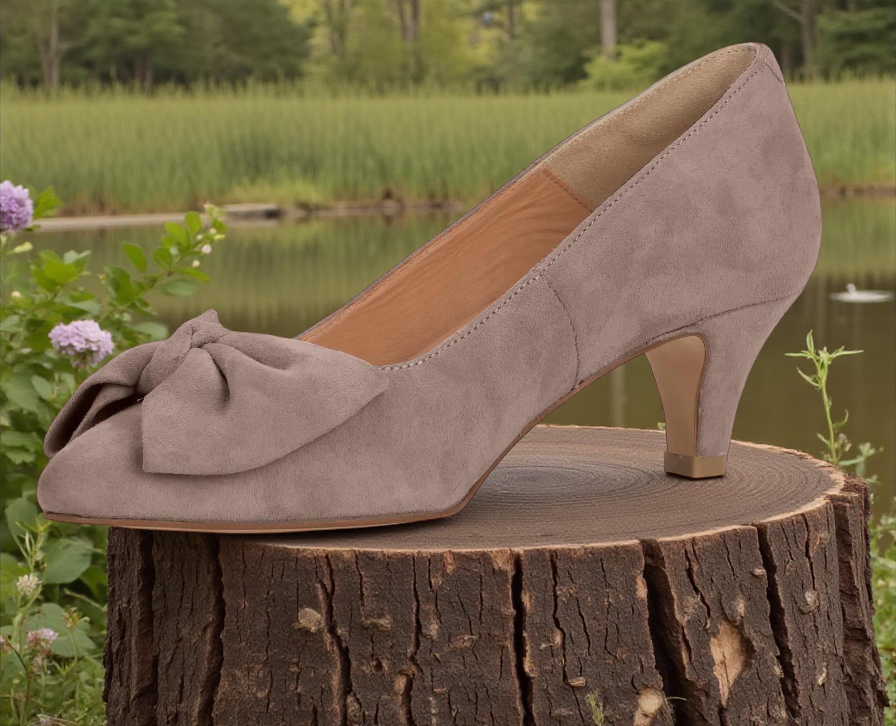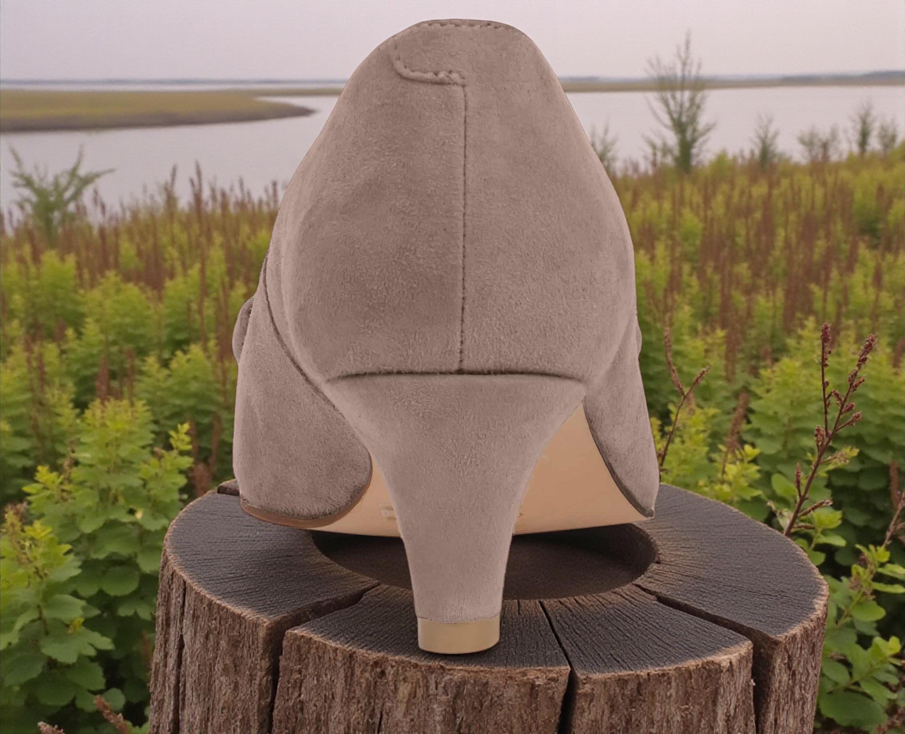 Women's light grey traditional pumps made of goatskin leather – elegant dirndl pumps with deerskin insole, Oktoberfest shoes, Bavarian Austrian traditional dress