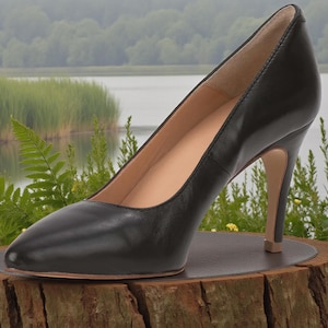 The pointed toe visually elongates the leg and creates a slender, feminine foot. With a heel height of approximately 9 cm, the pump combines elegant height with surprisingly comfortable wear. The non-slip rubber sole provides secure footing and makes this traditional shoe a reliable companion.