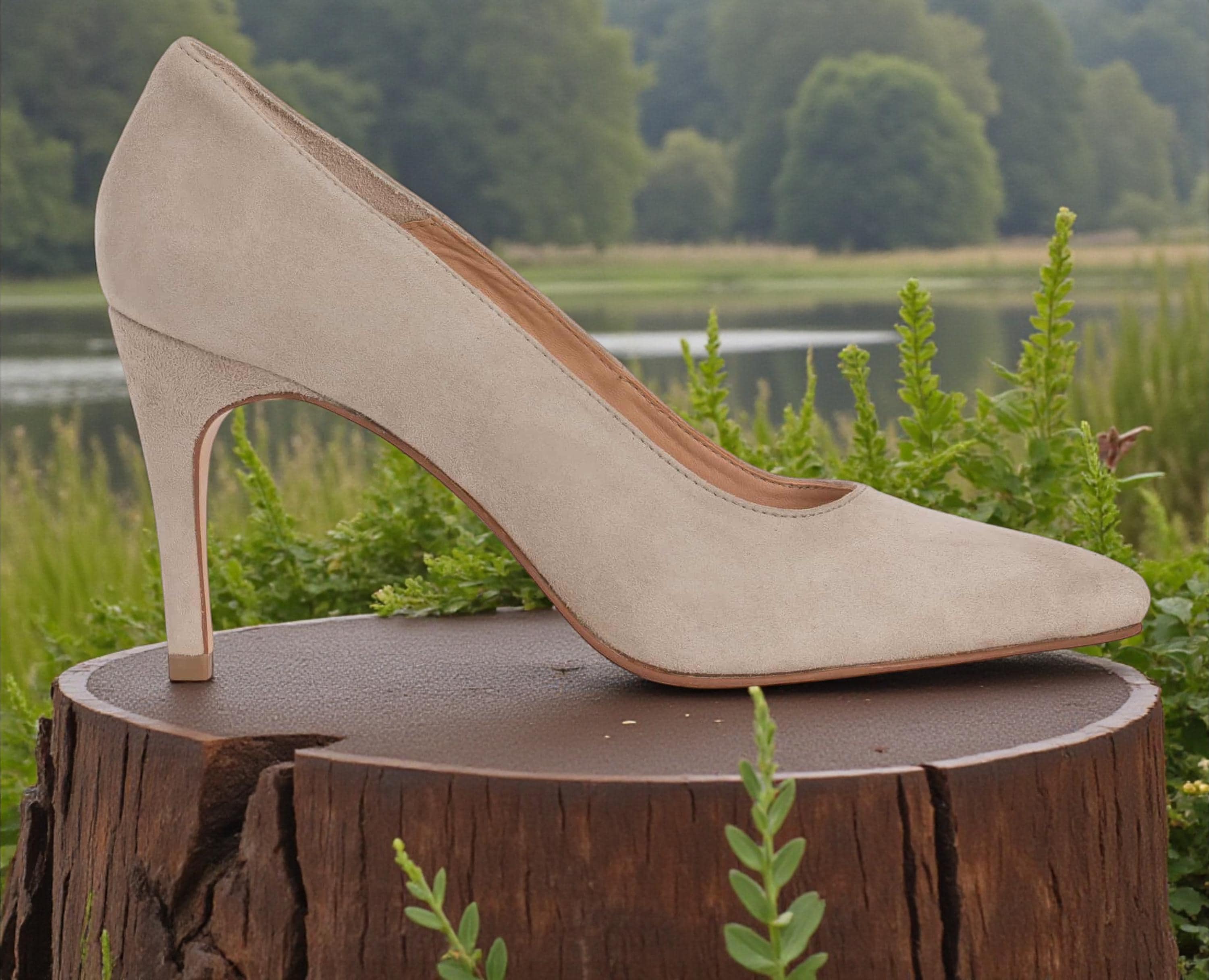 Women's beige traditional pumps made of goatskin leather, elegant dirndl shoes with deerskin insole, Oktoberfest shoes, Bavarian Austrian traditional dress