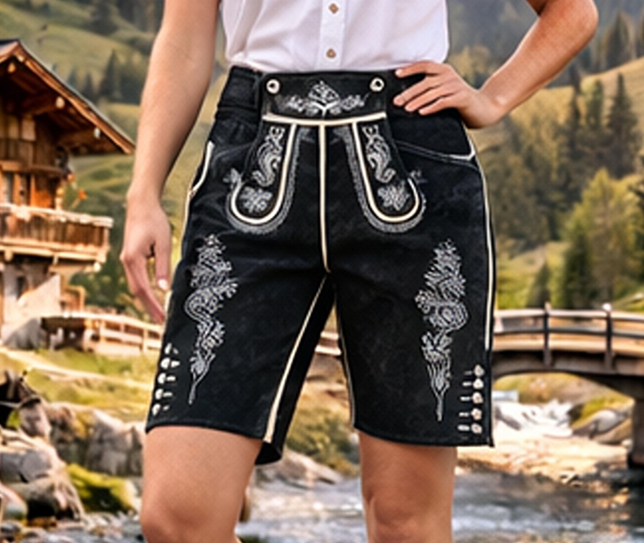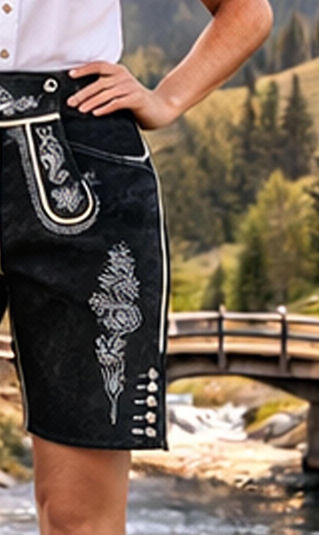 Damen Hirschlederhose Waldsee Schwarz Maßanfertigung einer maßgeschneiderten sämisch gegerbte kurze Trachtenlederhose Oktoberfest