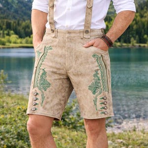 Herren Hirschlederhose Gosausee Hellbraun Maßanfertigung einer maßgeschneiderten sämisch gegerbte kurze Trachtenlederhose Oktoberfest