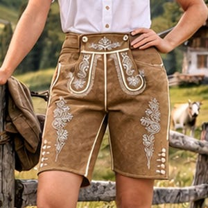 Du kannst deine Lederhose in verschiedenen Farben, Längen und mit Wunschstickerei anfertigen lassen.