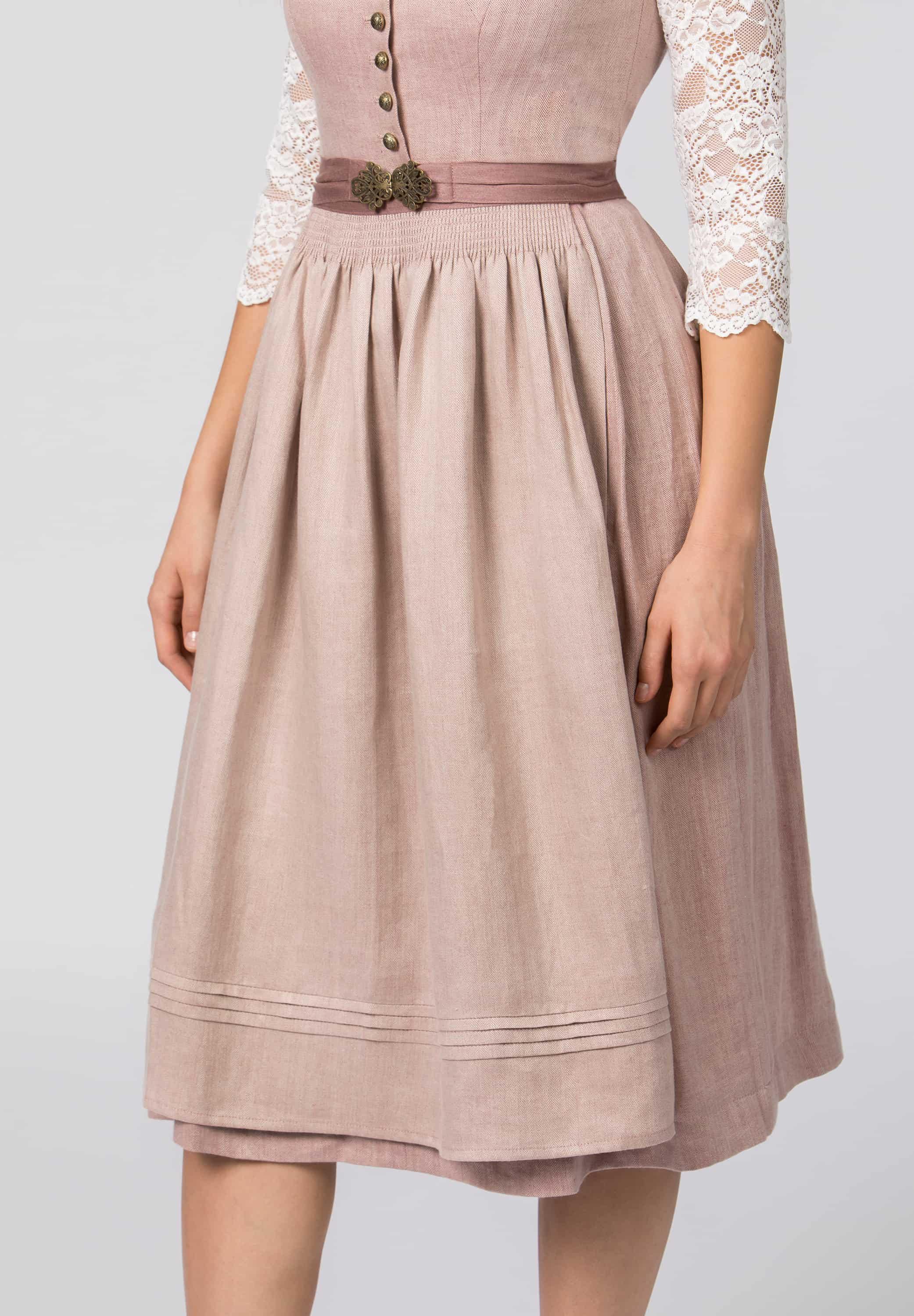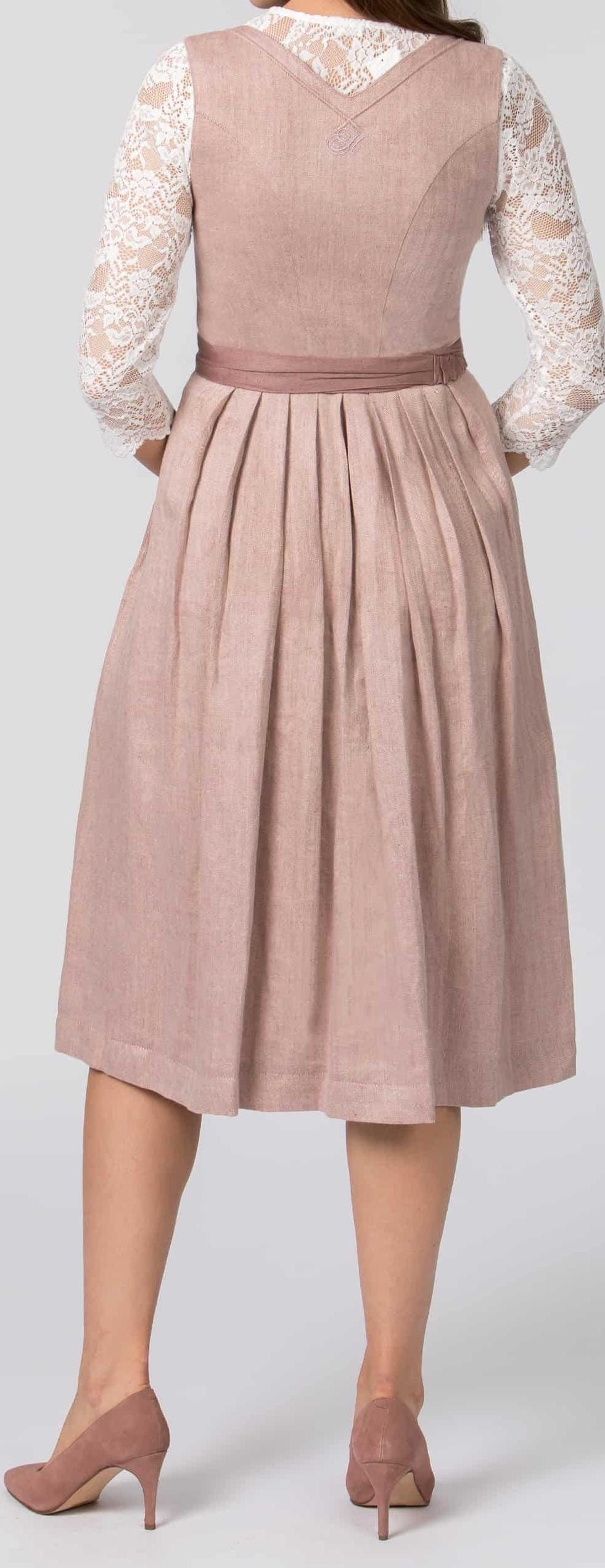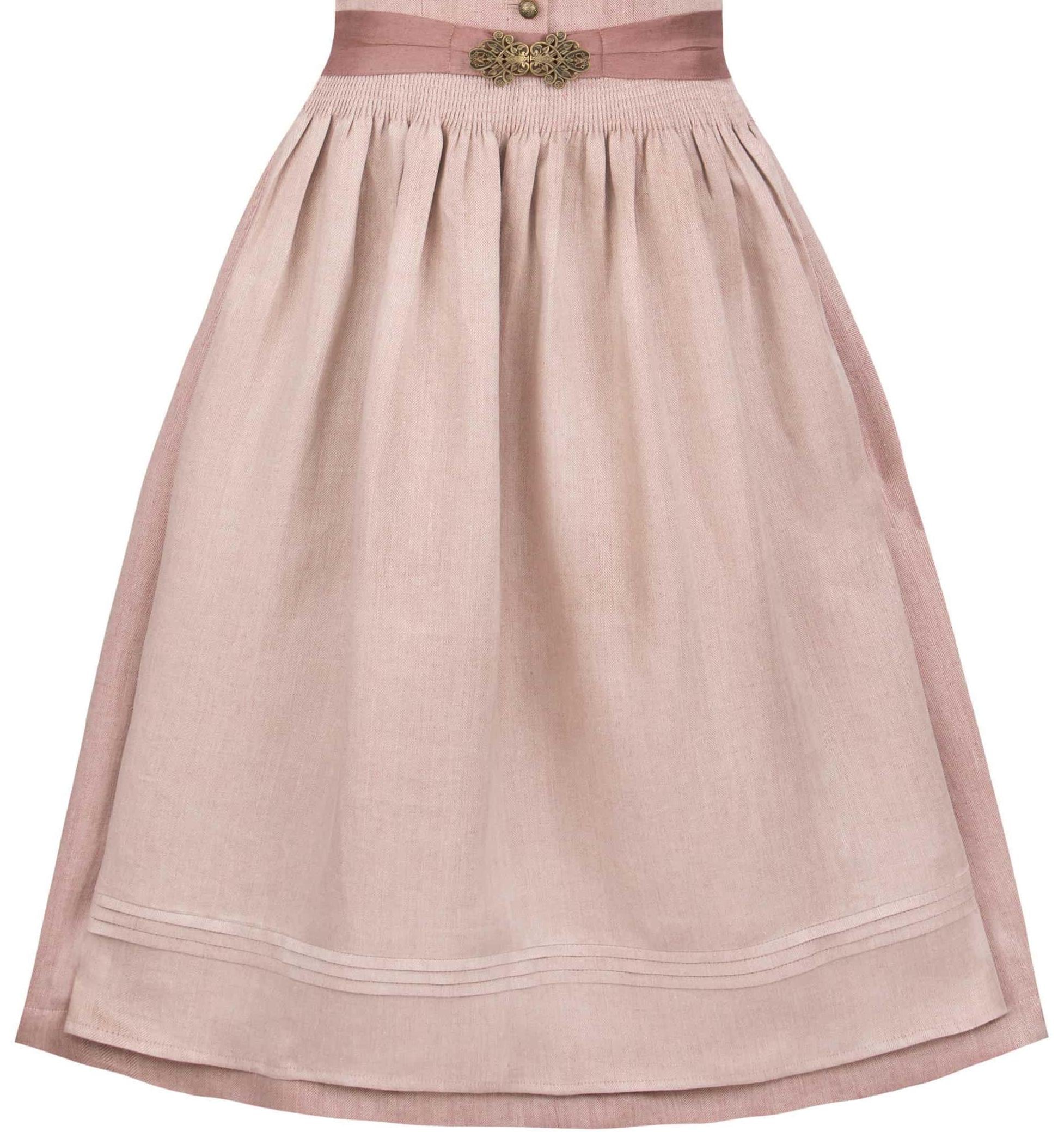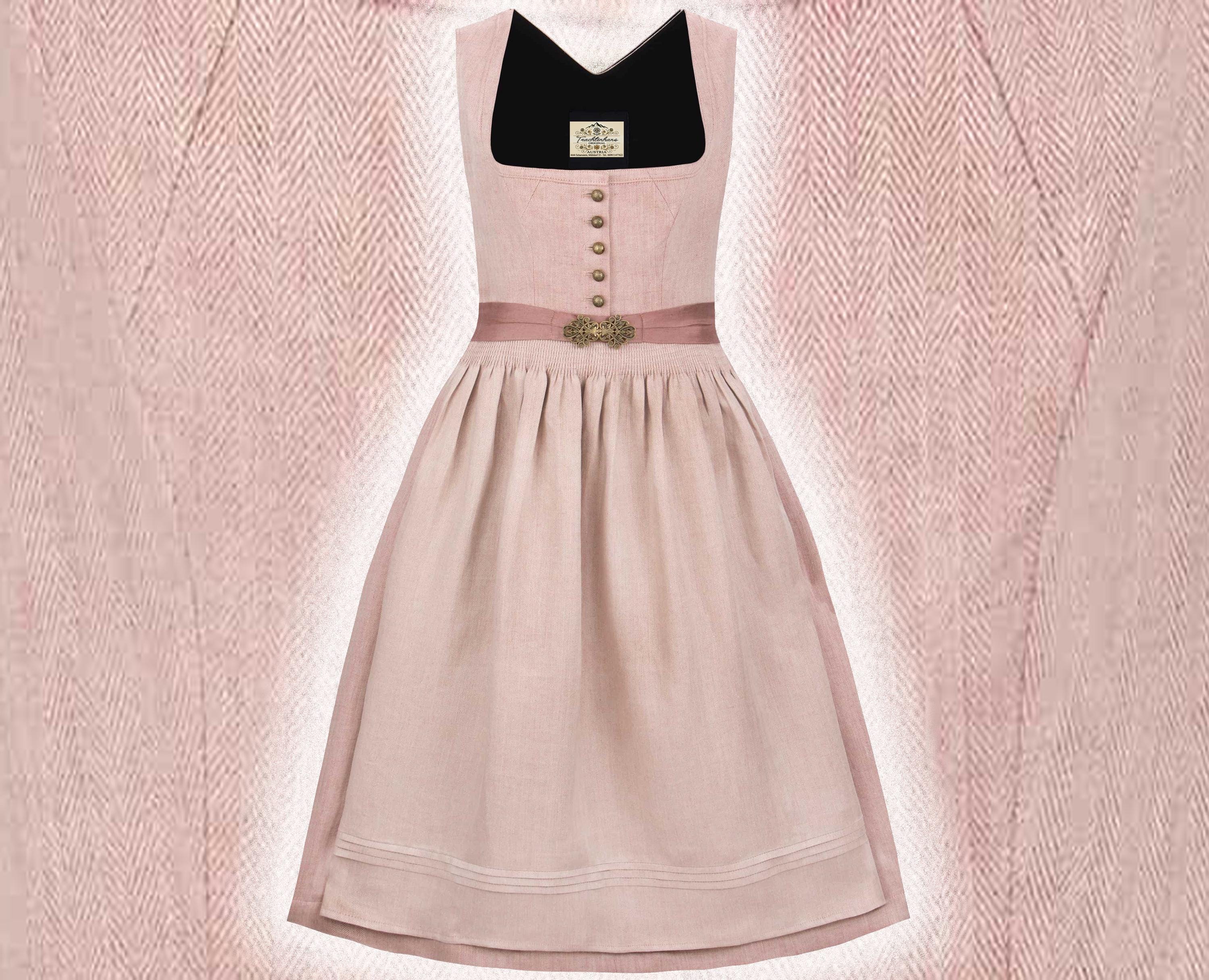 Premium Dirndl in antique rose linen herringbone, 75 cm – Elegant traditional dirndl with brass buttons and linen apron – Festive dirndl dress for women