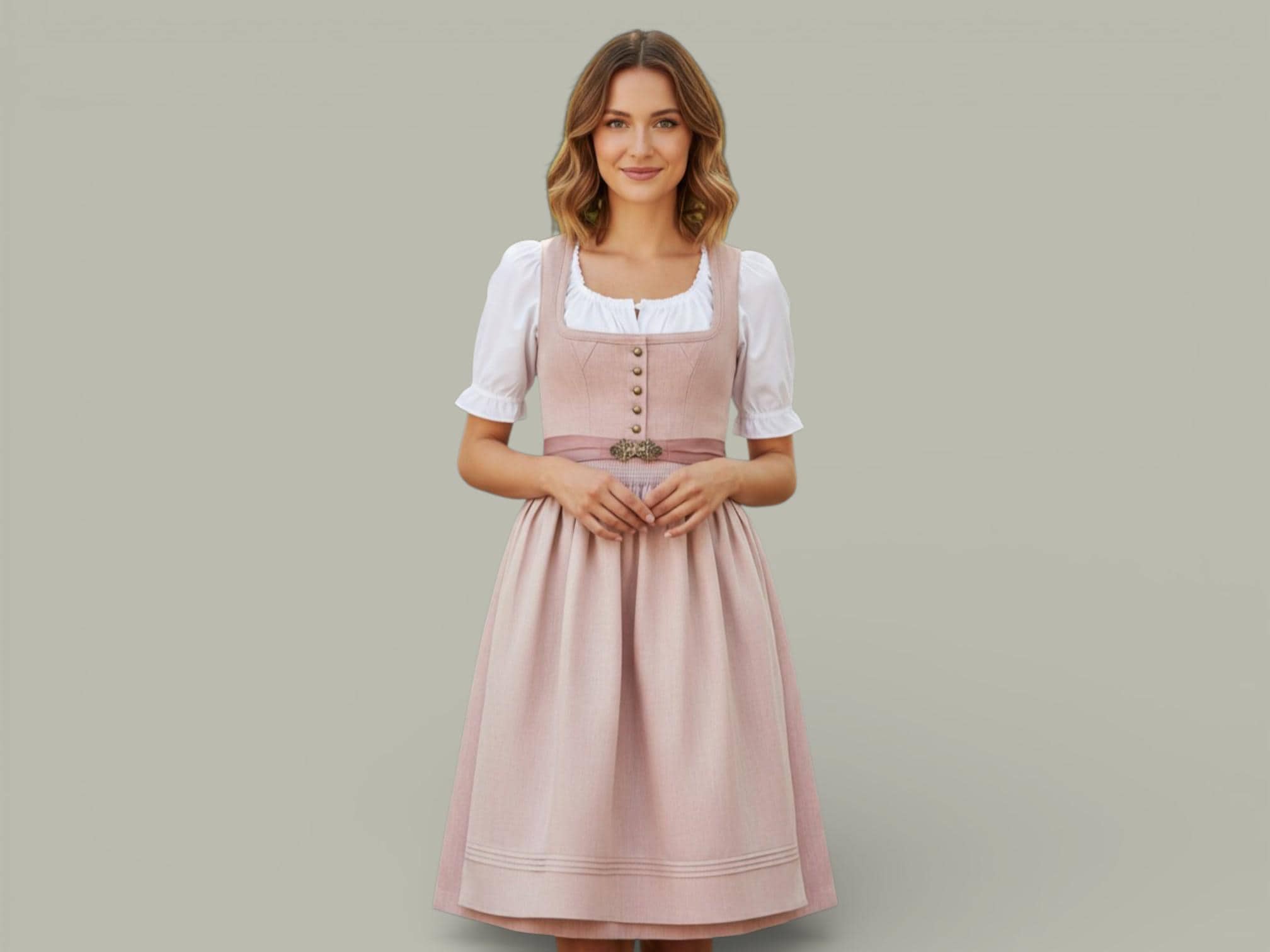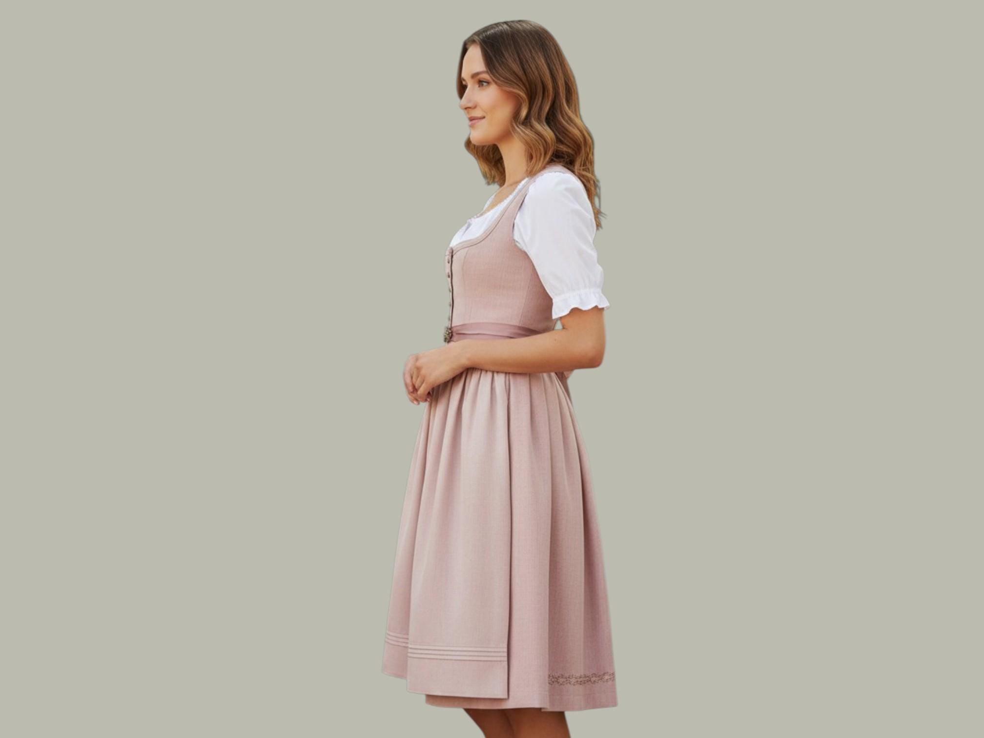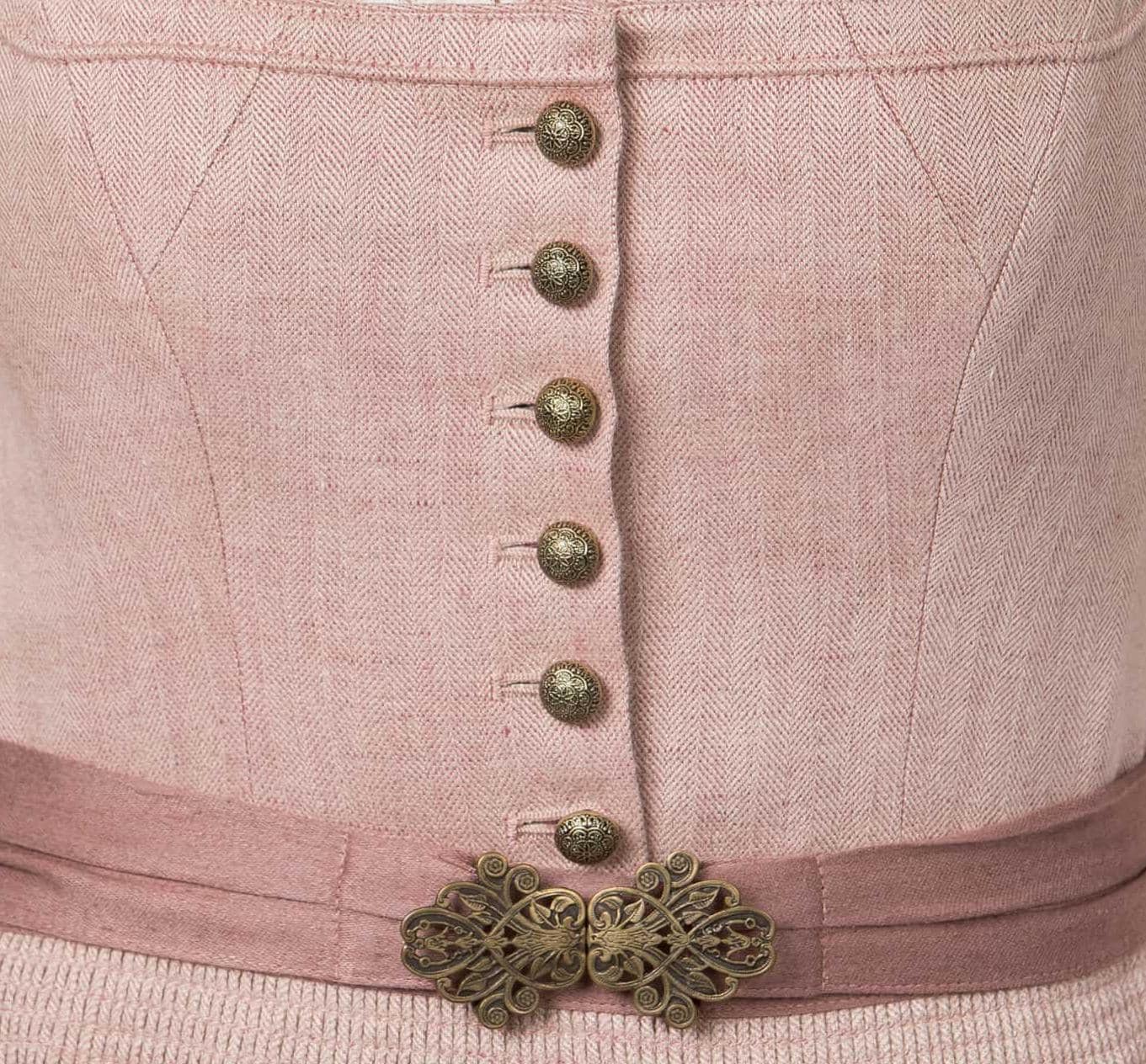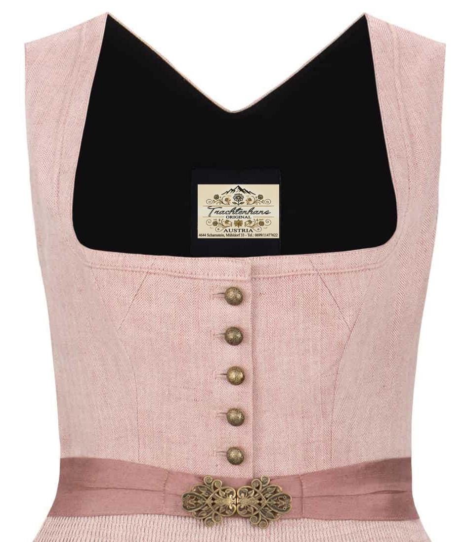 Premium Dirndl in antique rose linen herringbone, 75 cm – Elegant traditional dirndl with brass buttons and linen apron – Festive dirndl dress for women