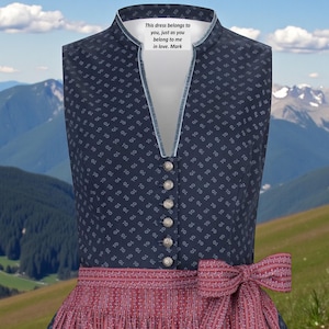This dirndl features a practical skirt pocket for safely storing small items. It also offers enough extra fabric to be altered by up to two sizes if needed.
